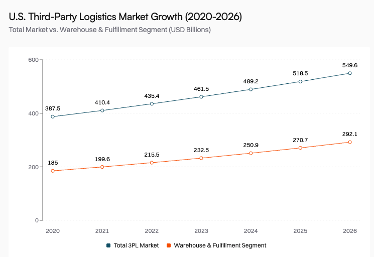 The broader U.S. third-party logistics market presents a massive opportunity. The market was estimated at $435.43 billion in 2022, and is projected to garner $1028.24 billion by 2032, representing a compound annual growth rate that reflects the ongoing outsourcing of logistics functions by companies seeking to focus on core competencies while leveraging specialized providers' scale and expertise.